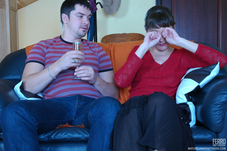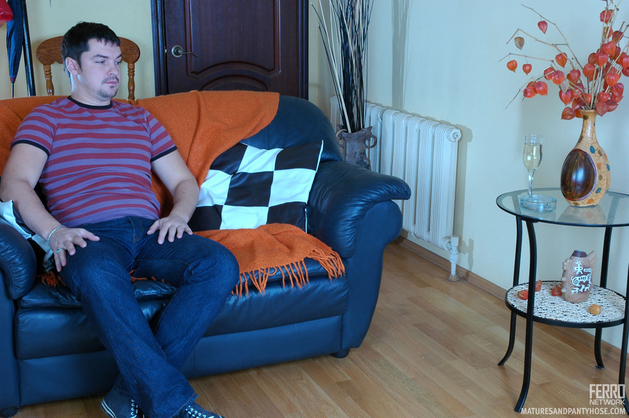 Nylon-addicted guy slides his cock into moms tights aching for hard finale